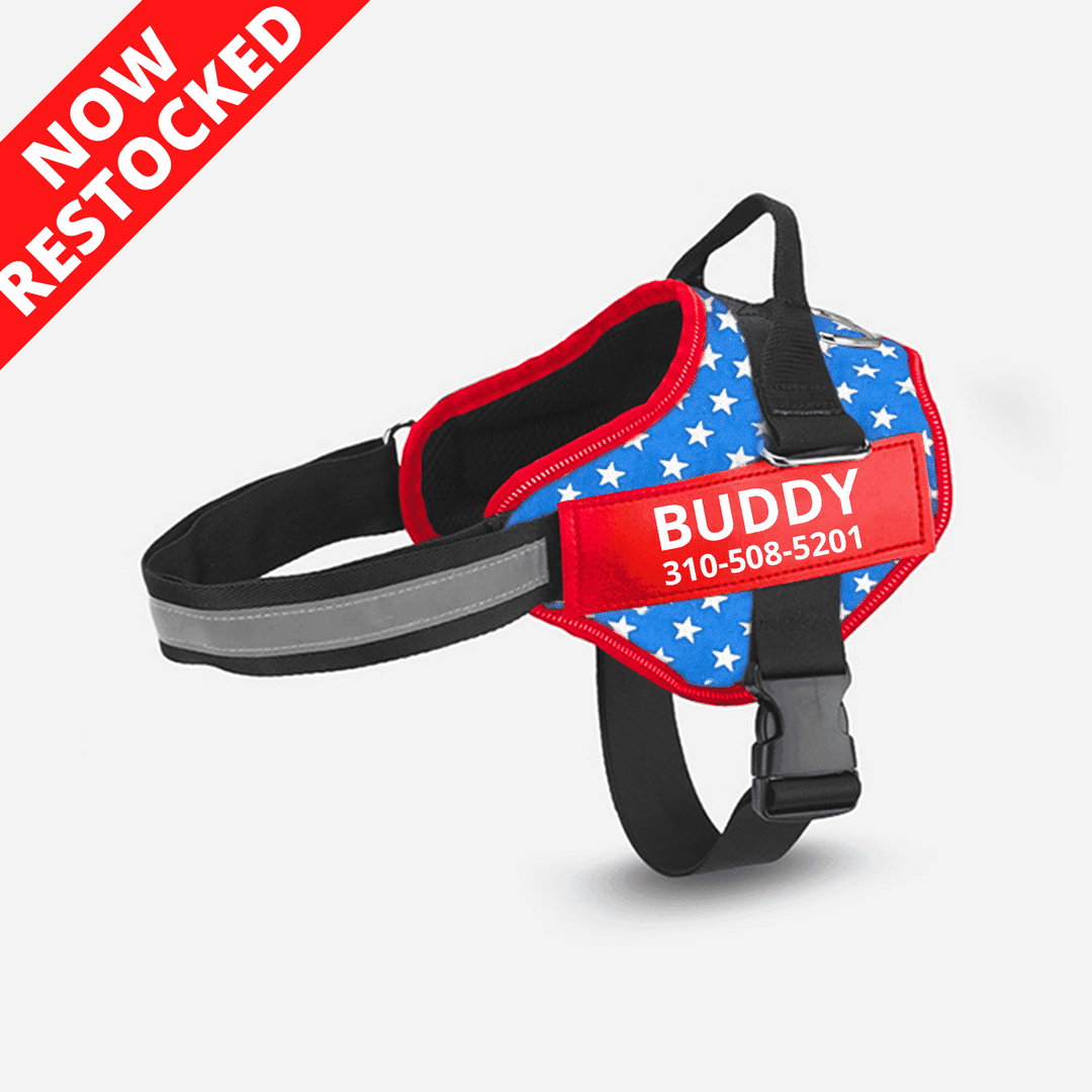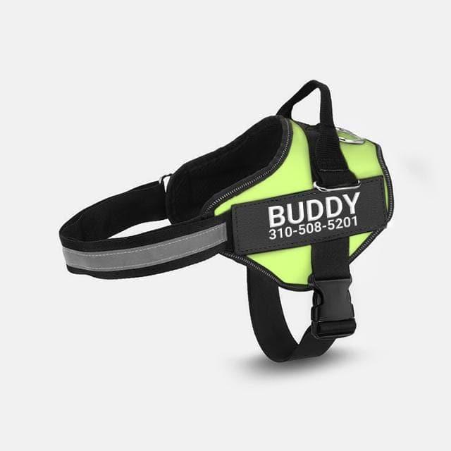 Now you can adventure with more confidence! Your dog will draw lots of attention while boasting the stylish GripHarness™ with personalized text and your phone number. Comes in bright colors with a reflective strap that makes your pup stand out for safety & so you can see them better.